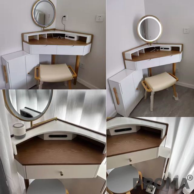 โต๊ะเครื่องแป้ง โต๊ะเครื่องสำอางเข้ามุม พร้อมกระจกแต่งหน้าไฟ LED
