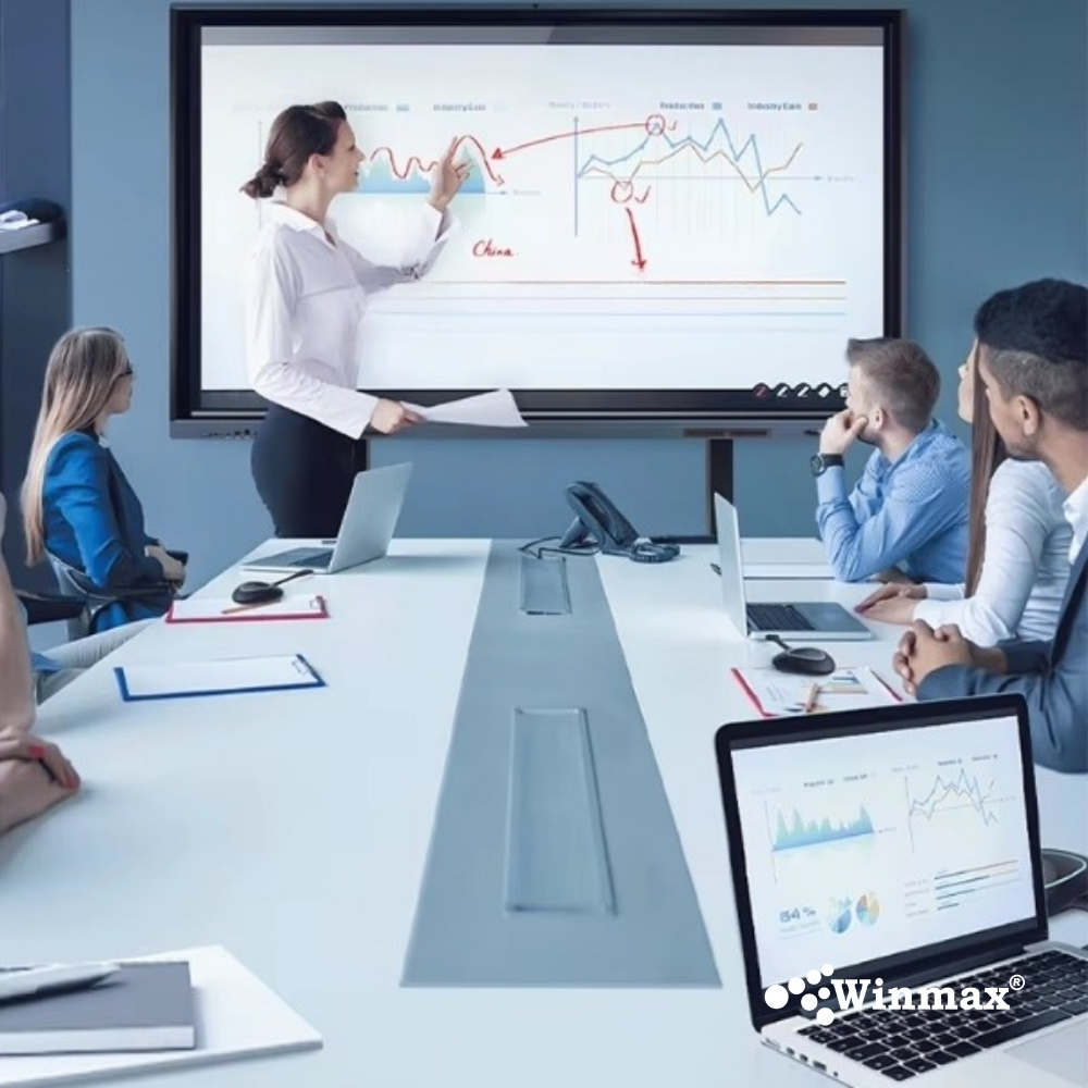 อินเตอร์แอคทีฟสมาร์ทบอร์ดสมาร์ทขนาดใหญ่ 55 นิ้ว WINMAX รุ่น Win-IMR32-55 ที่ออกแบบมาเพื่อการประชุมและสัมมนา รองรับซอฟต์แวร์สำหรับการประชุมและนำเสนอแบบมืออาชีพ ช่วยให้การประชุมเป็นไปอย่างมีประสิทธิภาพและไม่น่าเบื่อ ด้วยจอภาพคุณภาพสูงความละเอียด 4K ให้ภาพคมชัด สีสันสดใส หน้าจอระบบสัมผัส เหมาะที่จะเป็นตัวช่วยชั้นเยี่ยมในการนำเสนองานต่างๆ อีกทั้งยังช่วยสร้างบรรยากาศการประชุมที่ทันสมัยและสามารถโต้ตอบได้แบบเรียลไทม์ เหมาะสำหรับห้องประชุม ห้องอบรม และพื้นที่จัดสัมมนาในองค์กรของคุณ สามารถใช้งานได้ทั้งระบบปฏิบัติการ Android และ Windows ซึ่งให้ความยืดหยุ่นและความสะดวกในการใช้งานสูงสุด รองรับการเชื่อมต่ออุปกรณ์เสริมอื่น ๆ แบบครบครัน