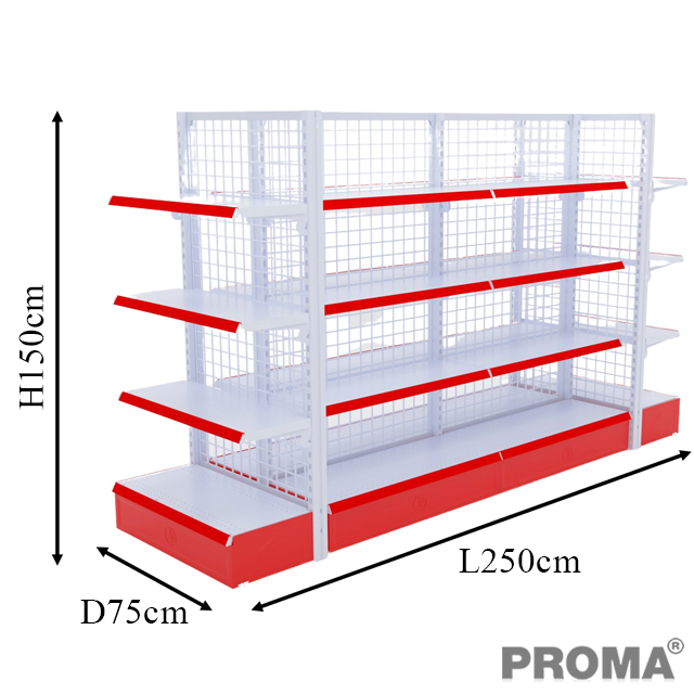 ชั้นวางสินค้ามินิมาร์ท ชั้นวางสินค้าซุปเปอร์สโตร์ PROMA แบบ SET ชุดต้น1+ชุดต่อ1+ปิดหัว1+ปิดท้าย1 ขนาด 75*250*150CM