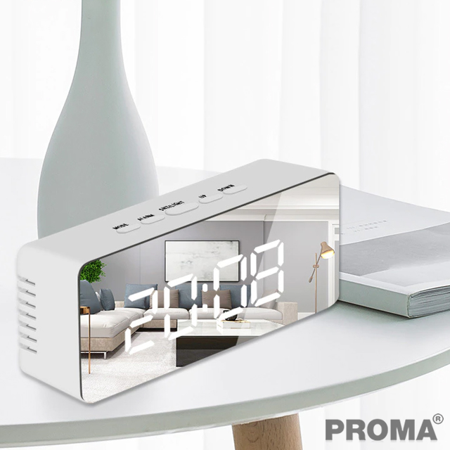 นาฬิกาปลุกดิจิตอล LED กระจกเงา