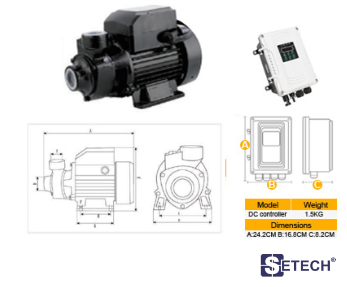 ปั้มห้อยโข่ง สำหรับโซล่าเซลและระบบไฟ DC + Control ท่อ 2 นิ้ว (1100W) SETECH รุ่น SQB-02