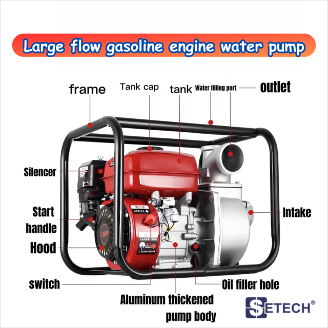 เครื่องยนต์สูบน้ำ เบนซิน 4 จังหวะ 7.5 แรงม้า ท่อ 2×2 นิ้ว