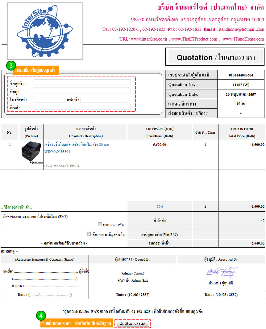 4. คลิกปุ่ม "พิมพ์ใบเสนอราคา" เพื่อเป็นหลักฐานในการสั่งซื้อ