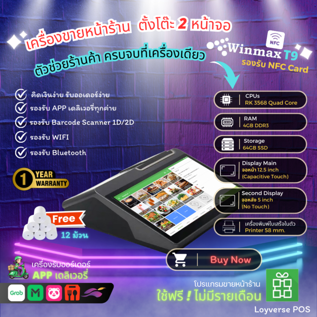 พร้อมเครื่องพิมพ์ใบเสร็จ NFC ในตัว จอทัชสกรีน 12.5 และ 5 นิ้ว Winmax-T9