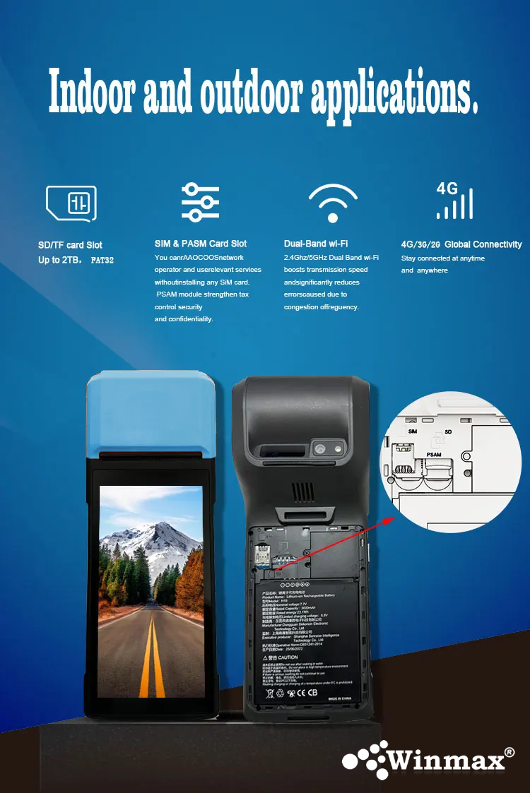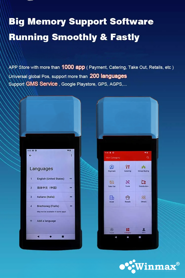Handheld POS Terminal Android System with Thermal Receipt Printer and NFC Reader Winmax-V9