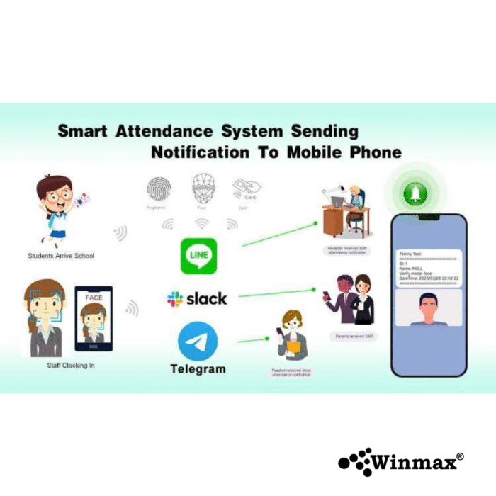 | Identification methods | Face, Fingerprint, RFID, Password, QR code |
