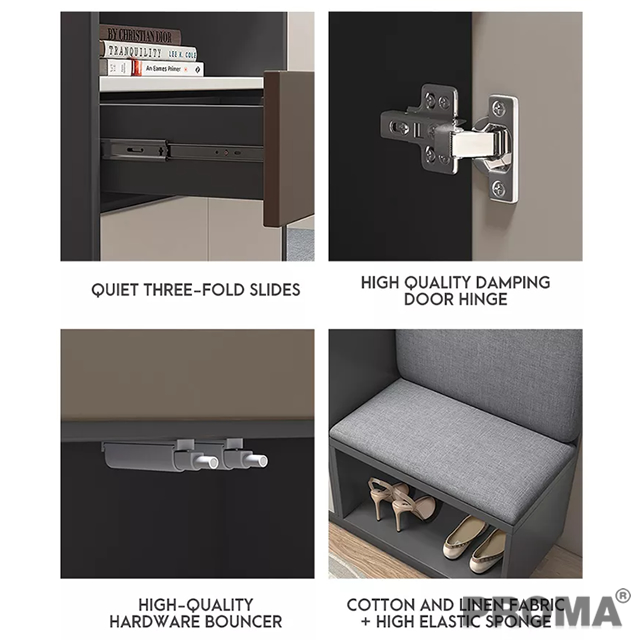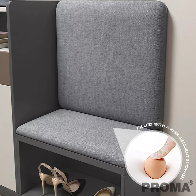 มีเบาะนั่งสำหรับใส่รองเท้า หุ้มด้วยผ้า