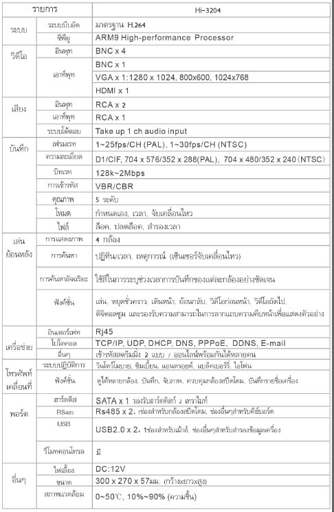 - ความละเอียดการบันทึก D1/CIF, เฟรมเรต 25fps/CH