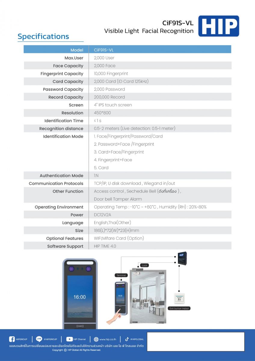 เครื่องสแกนใบหน้า HIP CIF91S-VL