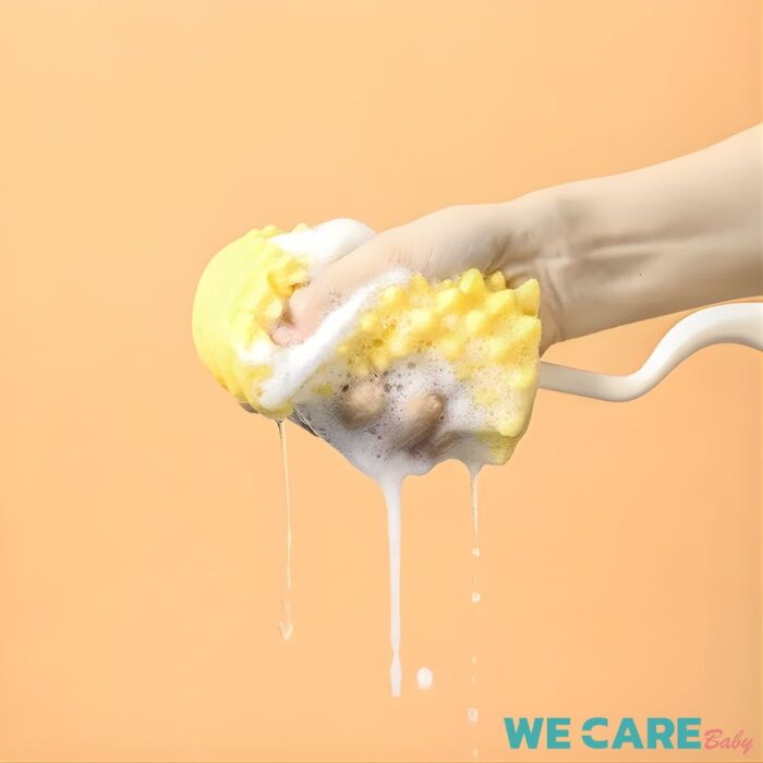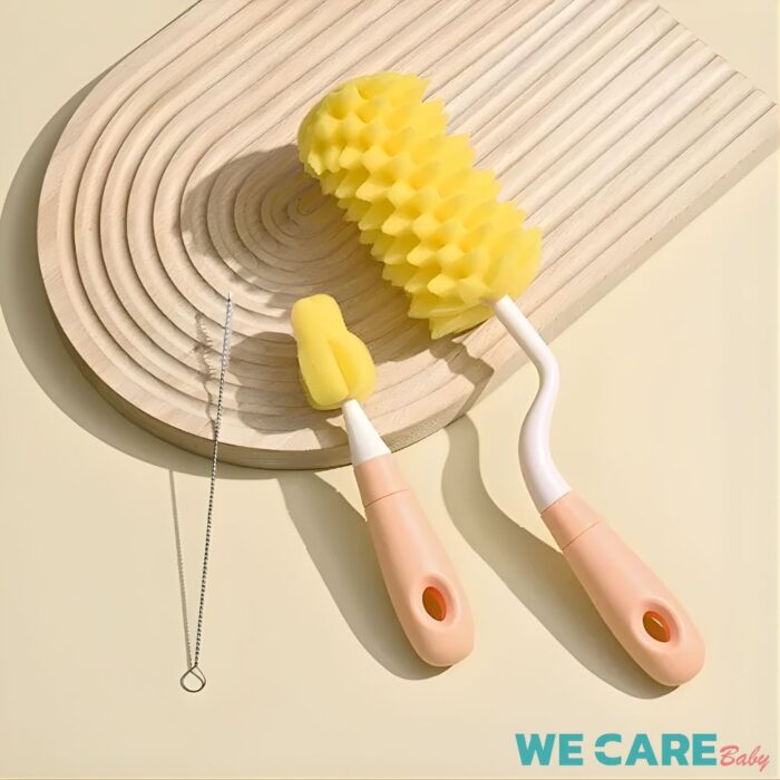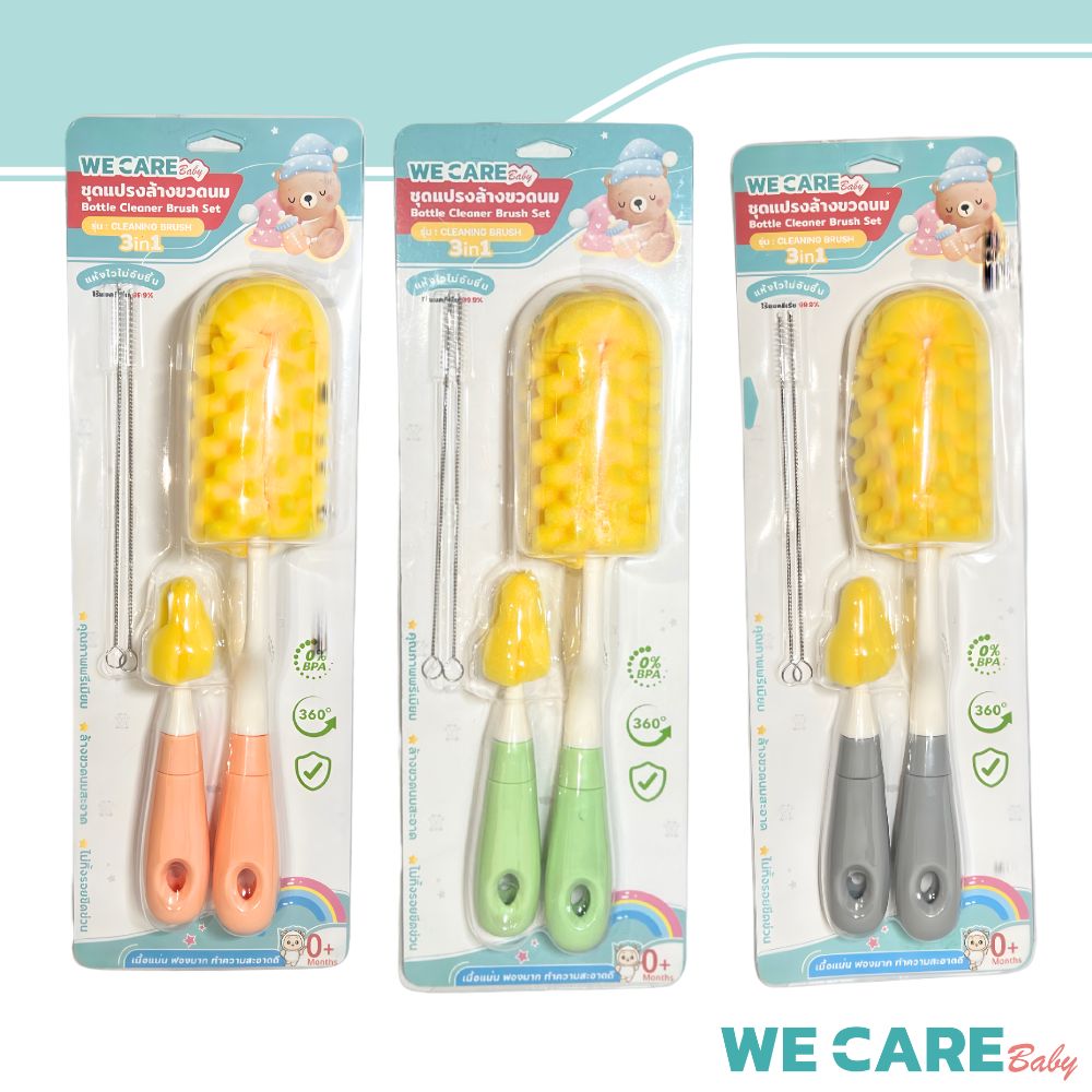 แปรงล้างขวดนม 3in1 แบบฟองน้ำสับปะรด ล้างจุกนม ล้างหลอด หัวแปรงหมุนได้  WE CARE รุ่น CleanBrush  สุขอนามัยของลูกน้อยเริ่มต้นจากภาชนะที่สะอาด หากไม่มีแปรงทำความสะอาดที่เหมาะสม อาจทำให้คราบนมและสิ่งสกปรกสะสม ซึ่งเป็นอันตรายต่อสุขภาพ WE CARE รุ่น CleanBrush ถูกออกแบบมาเพื่อช่วยให้คุณพ่อคุณแม่ทำความสะอาดขวดนมได้ง่ายและปลอดภัยยิ่งขึ้น อย่าปล่อยให้ความสกปรกสะสม เลือกแปรงทำความสะอาดที่ใส่ใจในทุกดีเทล เพื่อสุขภาพที่ดีของลูกน้อย