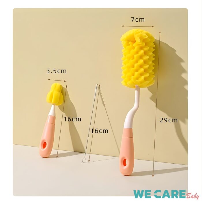แปรงล้างขวดนม 3in1 แบบฟองน้ำสับปะรด ล้างจุกนม ล้างหลอด หัวแปรงหมุนได้ ปลอดสารก่อมะเร็ง ปลอดภัยกับลูกน้อย WE CARE รุ่น Cleaning Brush