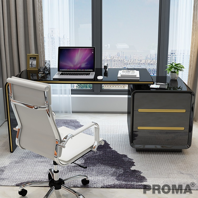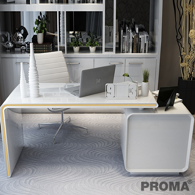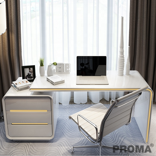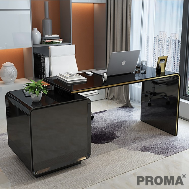 โต๊ะคอมพิวเตอร์โมเดิร์น โต๊ะทำงาน/อ่านหนังสือ MODERN&LUXURY โค้งมนเดินเส้นทอง