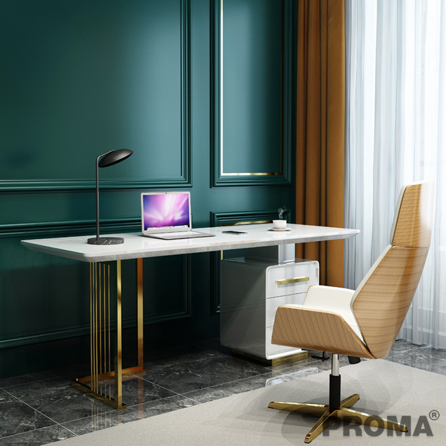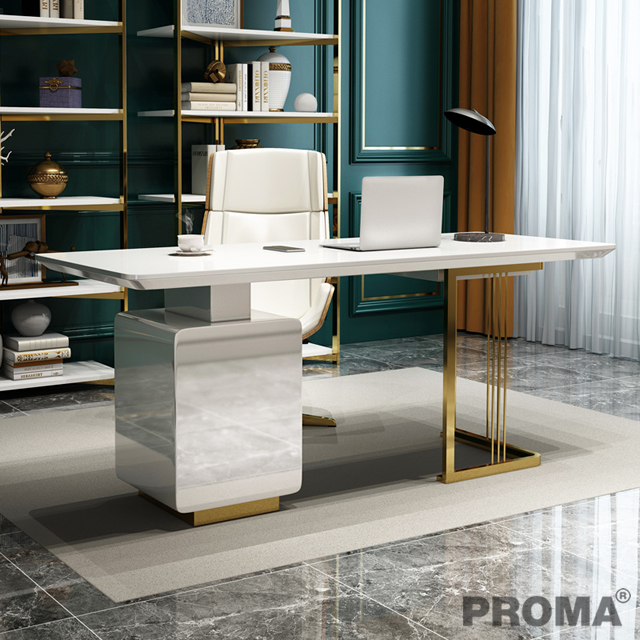 โต๊ะทำงาน โต๊ะคอมพิวเตอร์ขาสแตนเลสสีทองดีไซน์หรูหรา