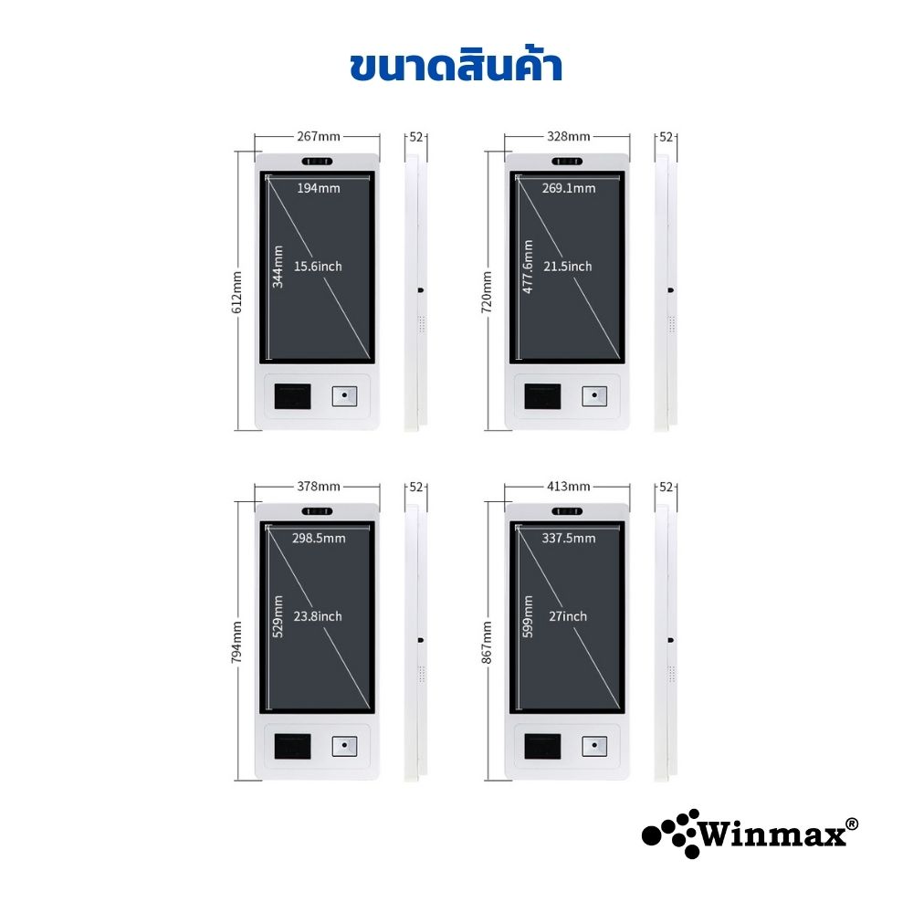 ตู้คีออสขายสินค้าบริการตนเอง Self Ordering Kiosk ติดผนังหรือตั้งพื้น ขนาด 21.5/23.8 นิ้ว Winmax รุ่น Win523