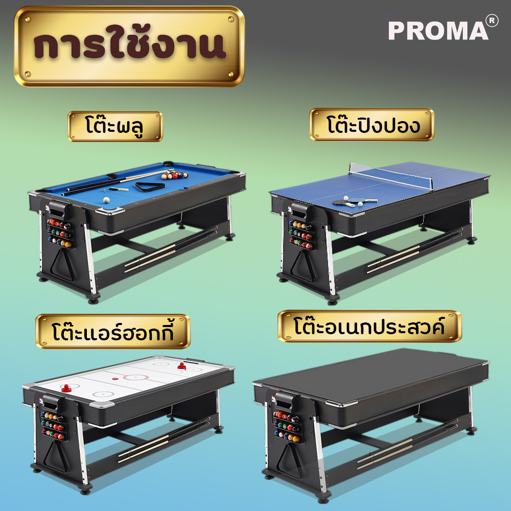 โต๊ะพูล PROMA 4in1 โต๊ะพูล โต๊ะแอร์ฮอกกี้ โต๊ะปิงปอง โต๊ะอเนกประสงค์ ขนาด 7 ฟุต