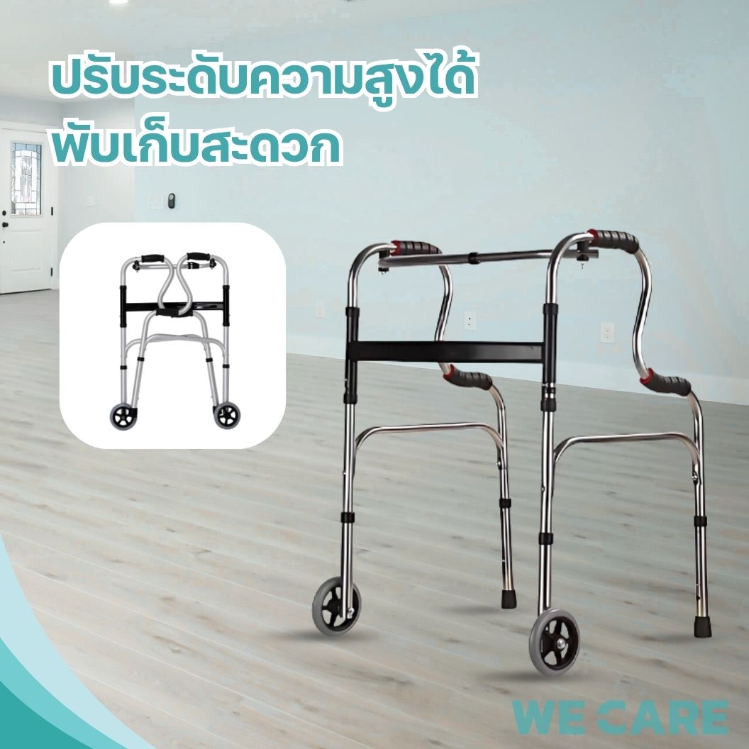 ไม้เท้าพยุงเดินวอร์คเกอร์ WE CARE แบบ 4 ขา มีล้อช่วยเดิน ไม้เท้าผู้สูงอายุ รุ่น EzyWalk